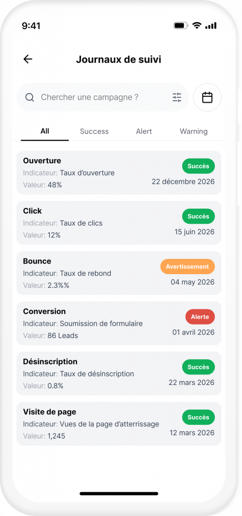 Visualisez vos résultats pour comparer et améliorer l’efficacité de vos campagnes.