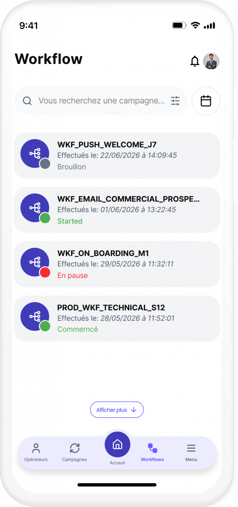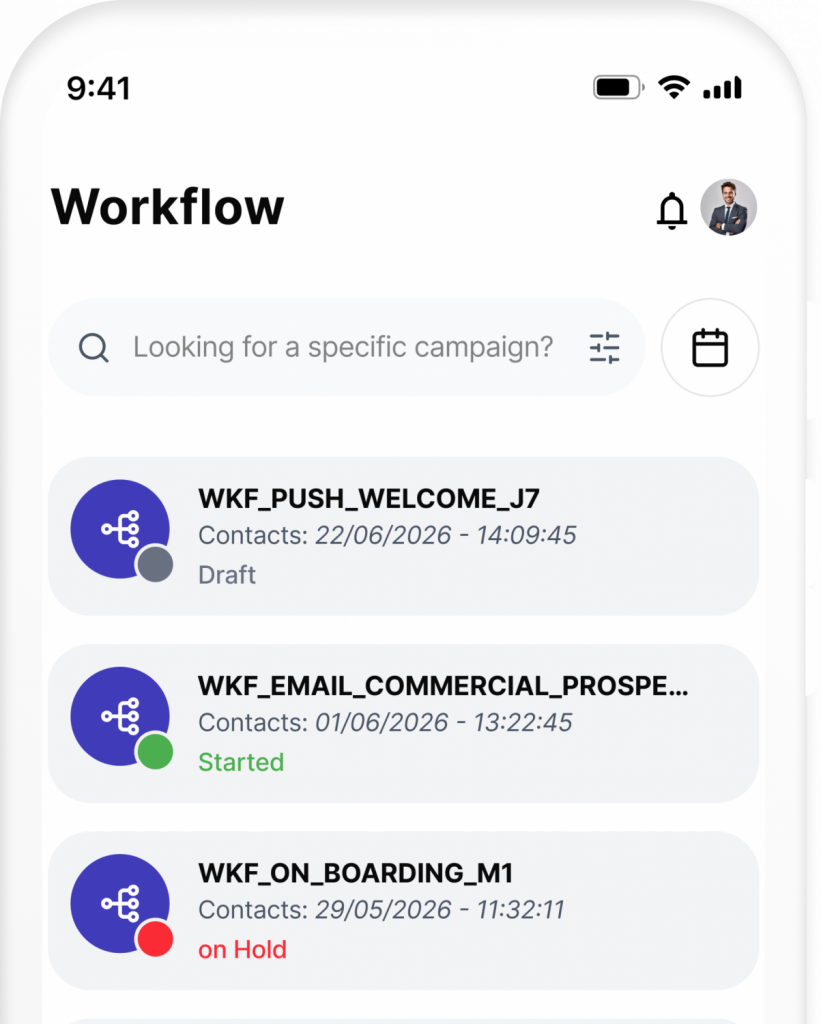 Suivez la performance de vos campagnes et workflows instantanément, avec des données actualisées en continu.