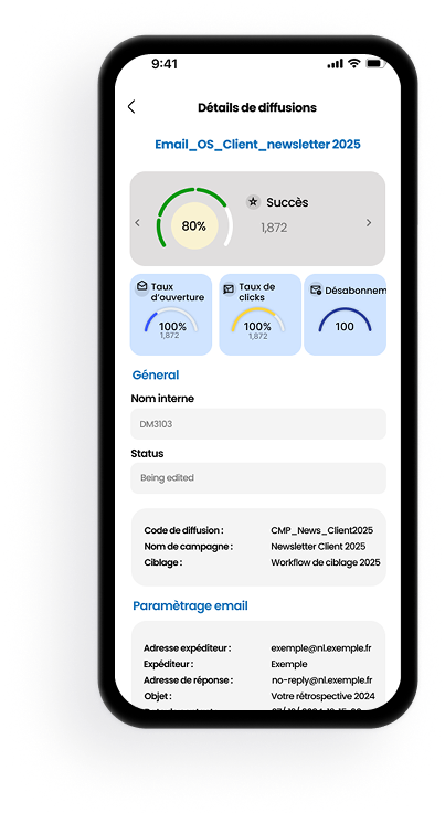 Suivez la performance de vos campagnes et workflows instantanément, avec des données actualisées en continu.